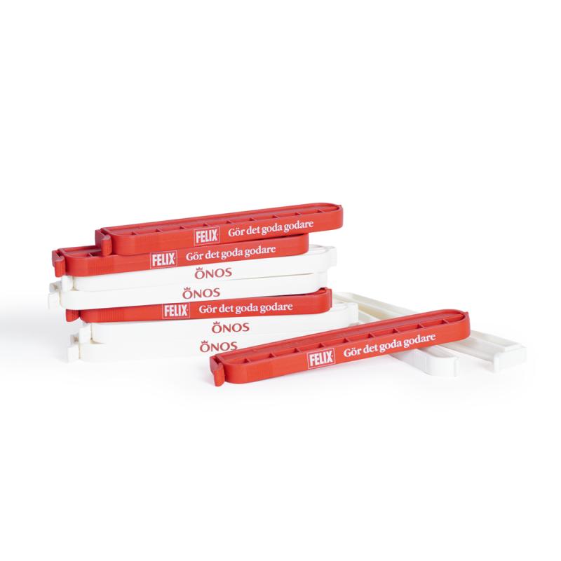Stora och praktiska påsklämmor, anpassade efter våra sås- & syltpåsar. Märkta med Önos och FELIX logotyper, levereras i 2-pack.